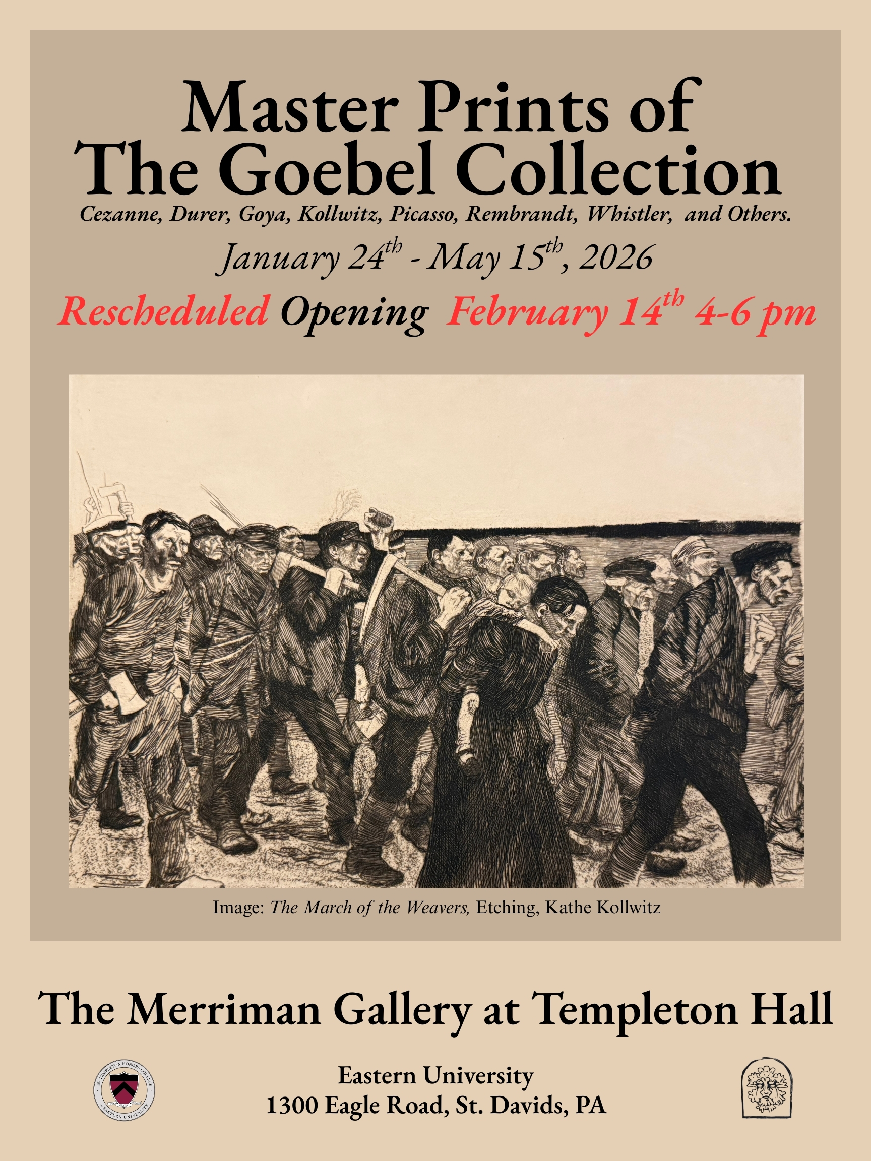 St. Davids, PA: On February 14, Eastern University’s Merriman Art Gallery will host a historic art exhibition showcasing select masterpieces from Eastern’s own Goebel Graphic Art Collection. This exhibition represents the first time these pieces have been shown on campus.